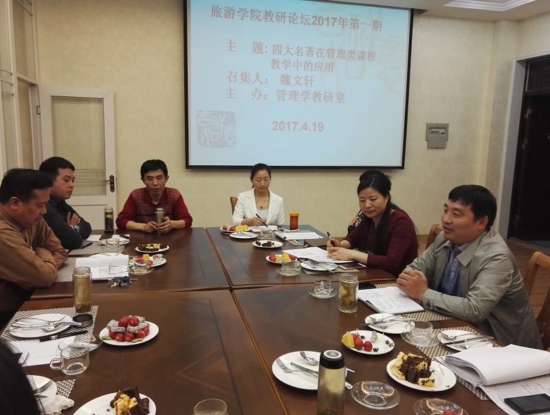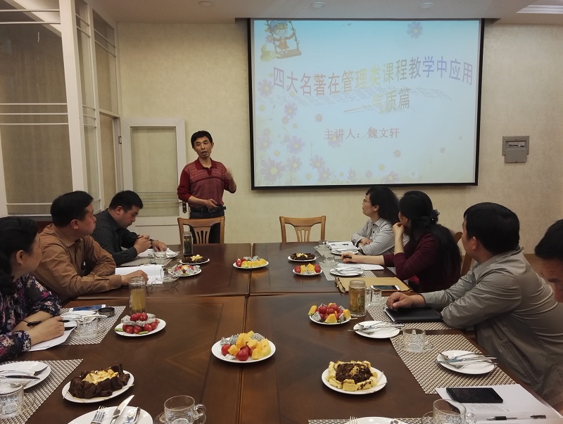 4月19日上午10点,beat365中文版官网入口管理学教研室主办的beat365中文版官网入口2017年第一期教学沙龙在经管楼302(西餐模拟室)成功举办。管理学教研室主任魏文轩教授做了题为“经典名著在管理类课程教学中的应用”的教学分享。