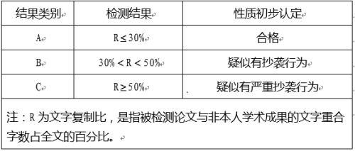 学校将利用信息技术手段对2022届毕业论文(设计)进行全部检测。检测结果分为三类: