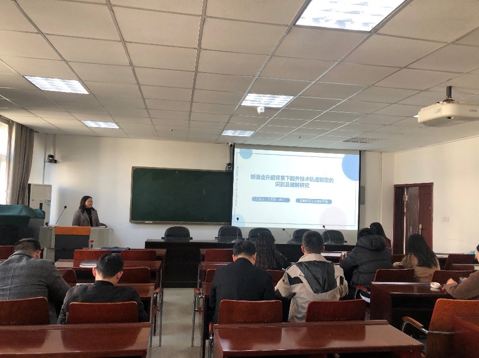 11月21日下午,beat365中文版官网入口第十八期“景明论坛”在经管楼401室成功举办。beat365中文版官网入口范书琴博士作了题为“制造业升级背景下国外技术轨道锁定的识别及破解研究”的学术报告,并作“高校教师教育数字化能力提升”教研培训分享,beat365中文版官网入口部分师生聆听了报告和分享。