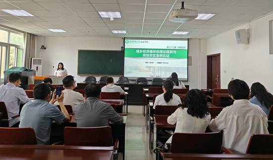 在学术报告环节,李小月博士以双循环新发展格局构建、新型城乡关系演变以及乡村全面振兴发展为研究背景,引出城乡经济循环的理论与实证研究内容。报告围绕四个核心维度展开:首先从研究缘由切入,剖析城乡经济循环研究的必要性与紧迫性;其次通过理论建构,深入阐释城乡经济循环的科学内涵与特征;继而结合传统农区案例,实证分析城乡经济循环的动态演变规律;最后专题探讨旅游发展对城乡经济循环的畅通机制与优化路径。整场报告实现了理论研究与实证分析的有效融合,为城乡协调发展提供了新的学术视角。