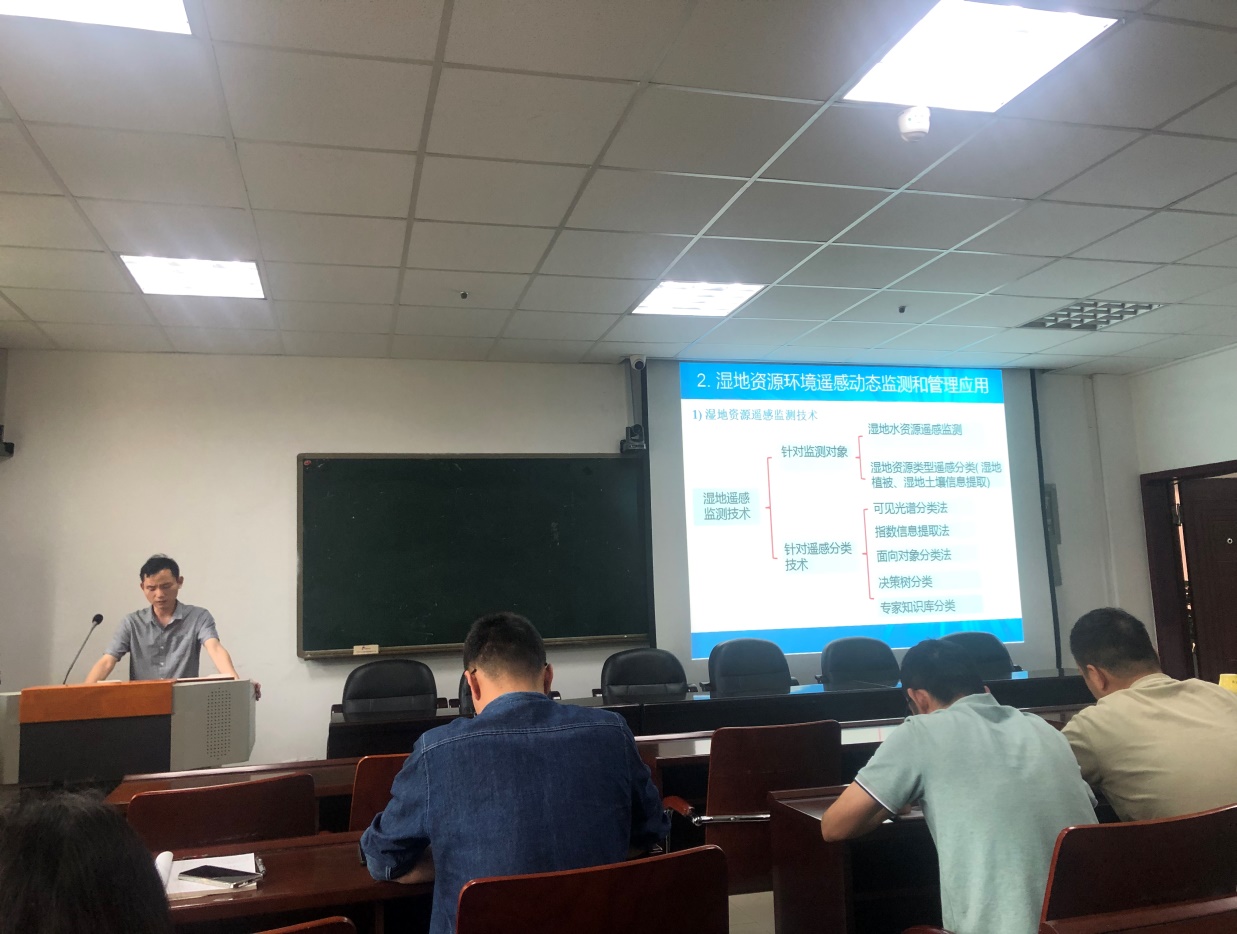 陈博士的报告从湿地资源环境监测与管理概述、湿地资源环境遥感动态监测和管理应用、目前存在的不足以及未来的发展趋势四个方面展开。