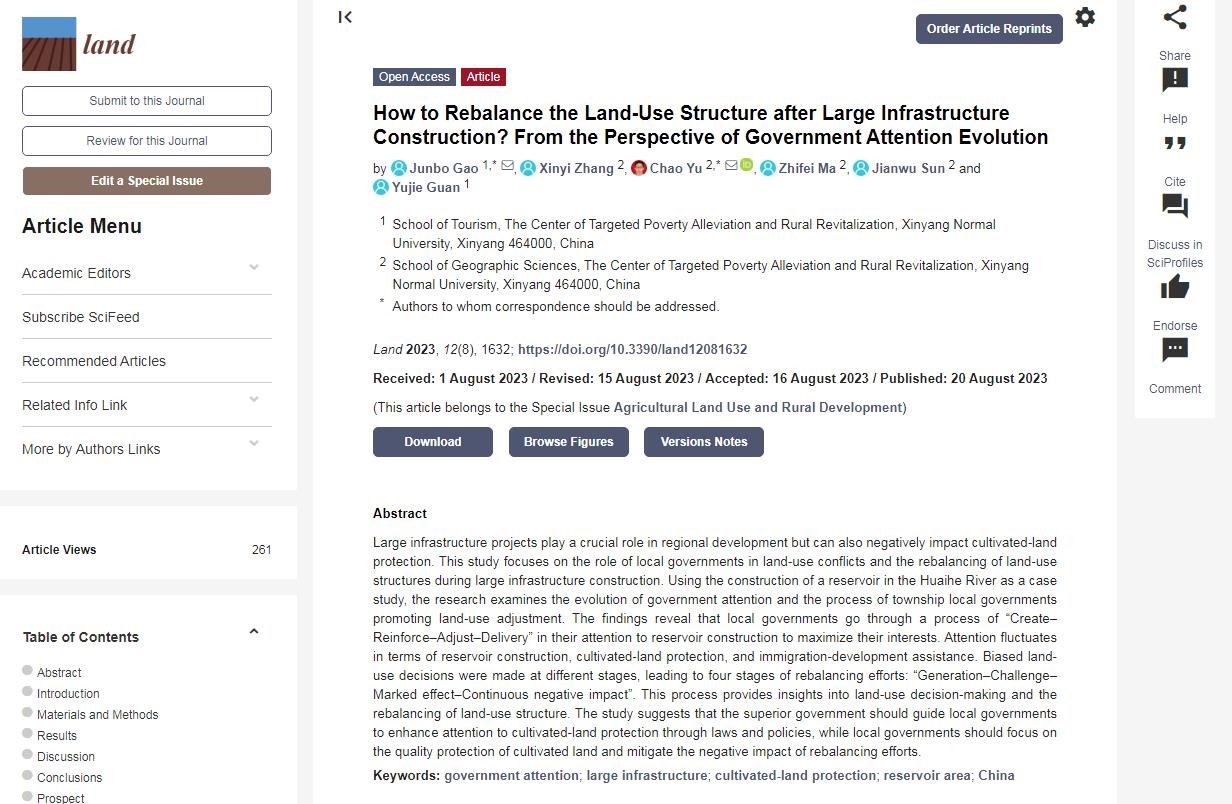 近日,beat365中文版官网入口高军波教授团队在SSCI期刊《land》(2022年影响因子:3.905,JCR分区Q2)发表了题为《How to Rebalance the Land-Use Structure after Large Infrastructure Construction? From the Perspective of Government Attention Evolution》的论文。