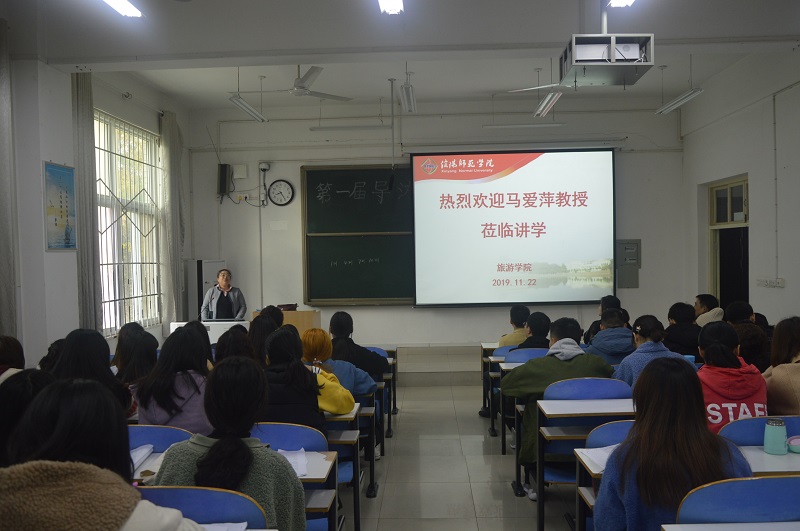 第一场报告会中,马爱萍教授从文化与旅游融合发展的角度来分析旅游文化演出市场与旅游产业发展的关系,并提出地方文化旅游品牌构建策略。在第二场报告会中,马教授结合自身多年的国内外从教经历,以开阔的视野,对新时代旅游学科建设的基本问题做了深入解读和思考,并提出了推进旅游学科建设的建议。报告结束后,马教授还就相关问题与师生进行了交流。