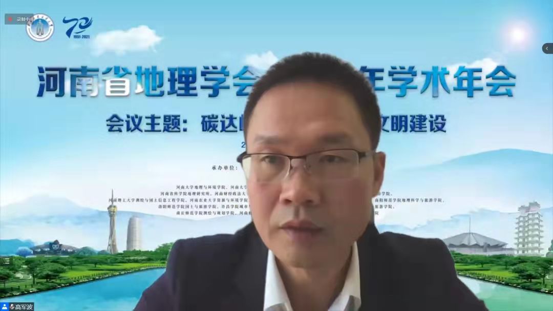 10月30日,由河南省地理学会主办、信阳师范学院beat365中文版官网入口参与承办的“河南省地理学会2021年学术年会”在郑州举行。会议以“碳达峰碳中和与生态文明建设”为主题,旨在促进河南省地理学创新与发展,服务国家战略和中部崛起,推动碳达峰碳中和背景下黄河流域生态保护和高质量发展。按照新冠疫情防控的要求,会议采用线上线下结合的方式进行。院长高军波教授带领部分青年教师参加了此次会议。