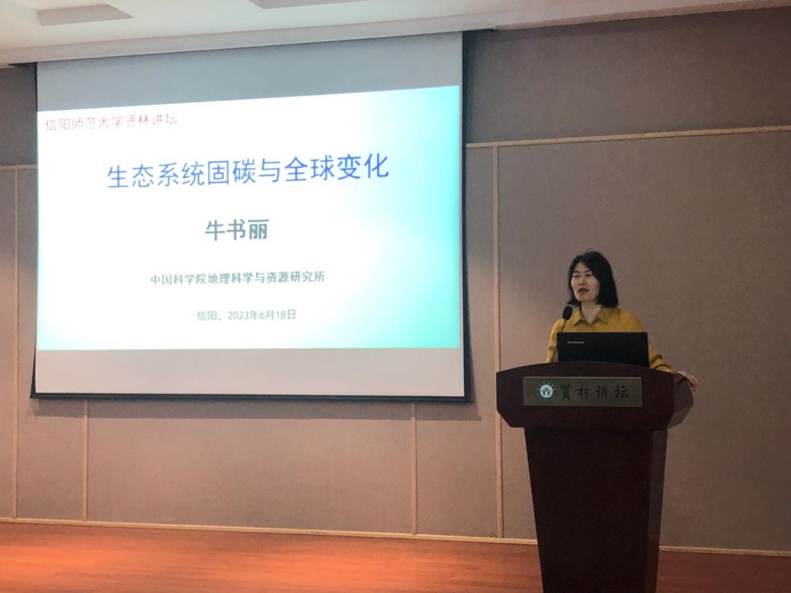 6月18日上午,应beat365中文版官网入口邀请,中国科学院地理科学与资源研究所牛书丽研究员在贤林讲坛作了题为“生态系统固碳与全球变化”的学术报告。beat365中文版官网入口青年教师、研究生及本科生共100余人参加了报告会。报告会由beat365中文版官网入口院长高军波教授主持。