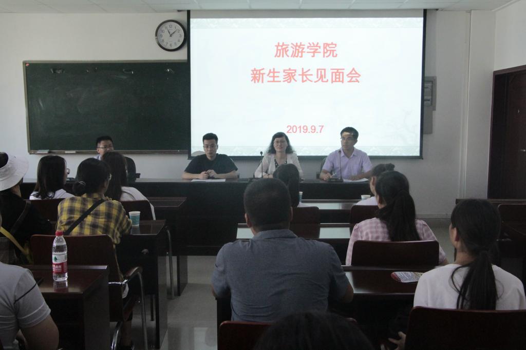 9月7日上午,beat365中文版官网入口在经管楼401会议室召开新生家长见面会。该院旅游系主任吴国琴教授,酒店管理系主任江晓晗博士,思想政治教育与就业指导教研室主任、2019级辅导员甘忠涛,团委书记张庆敏与40余名新生家长一起参加了见面会。会议由张庆敏主持。