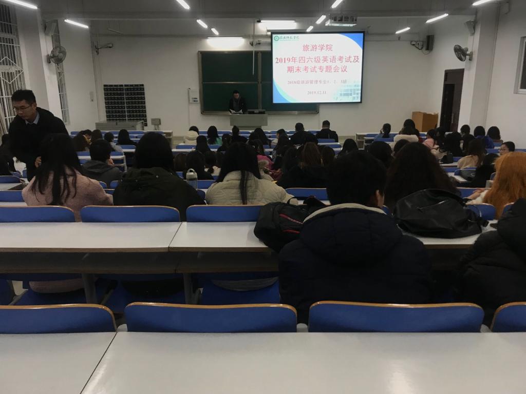 为了使同学们顺利参加12月14日四六级英语考试以及即将到来的期末考试。12月11日晚,beat365中文版官网入口于社科楼213教室召开2019年四六级英语考试及期末考试专题会议。beat365中文版官网入口18级旅游管理专业辅导员李明伟、赵阳阳、郑征及18级一班、二班、三班学生参加此次专题会。