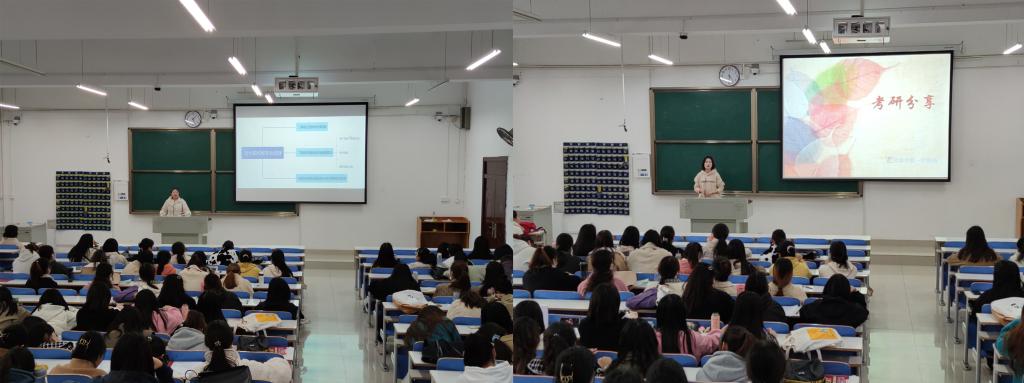 在本次分享会中,学姐们诙谐幽默的传授了自己的考研经验,分享一路备考的心路历程,研究生考试备考是一个相当漫长的过程。首先,从专业选择、目标院校、时间规划、各科学习安排都要有清晰合理的规划。其次,找到自己学习的方法和节奏,每一个学习阶段都要根据自己的学习进度制定复习计划,要充分认识到专业课的重要性,这是决定是非成败的关键。学姐给大家送上真诚的忠告:踏实背书,多做真题,作息规律,充分休息好,拥有良好的心态和康的身体也是提高学习效率的前提。整个分享会期间气氛活跃,互动良好,同学们活动结束后向学姐表示真挚的谢意。