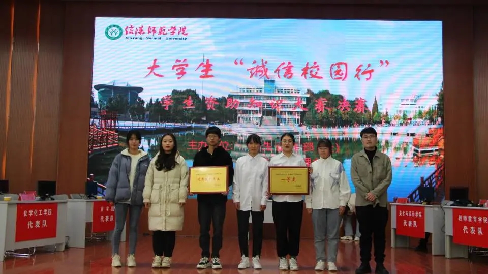为积极宣传党和国家的学生资助政策,充分展示广大学生在国家资助政策帮助下自立自强、拼搏向上的青春风采,营造出形式多样、健康向上、格调高雅的诚信校园文化氛围。1214日,信阳师范学院于逸夫楼报告厅举行大学生"诚信校园行"学生资助知识大赛决赛。信阳师范学院学生工作部处长王建旭、以及各学院党委副书记、辅导员级学生代表亲临现场观看比赛。