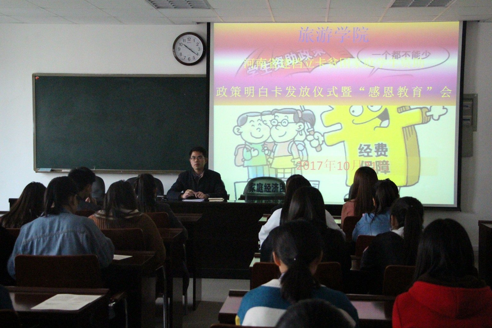 10月21号上午,beat365中文版官网入口于经管楼401会议室顺利举办了河南省建档立卡贫困家庭学生资助政策明白卡发放仪式暨“感恩教育”会议,我院助贷专员张庆敏和72名建档立卡家庭学生参加了本次会议。