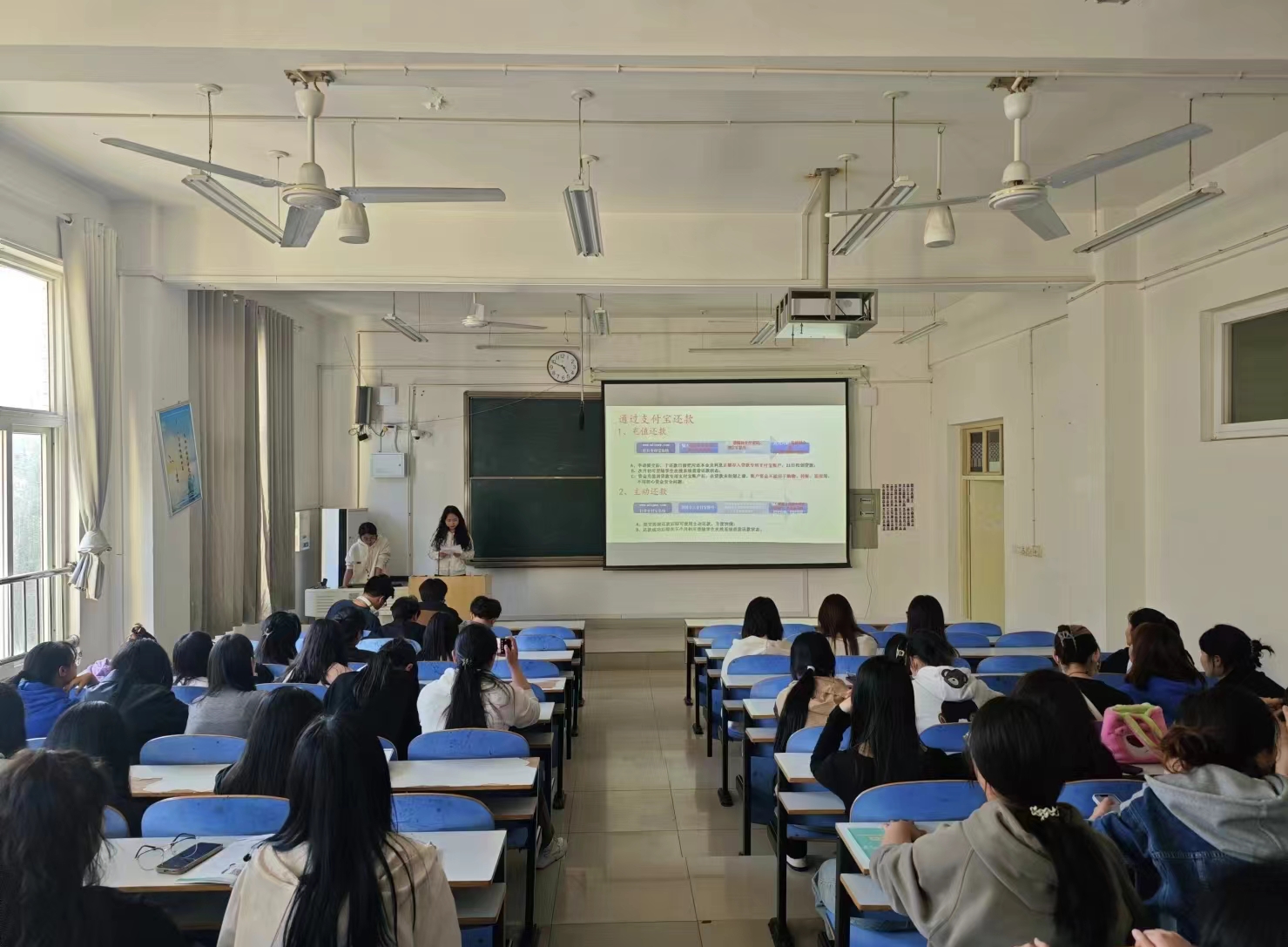 学院资助专员为大家讲解了助学贷款和金融诚信的重要意义,并对生源地助学贷款还款类型、毕业确认、感恩助学、还贷流程及还款方式等内容进行了详细讲解。请同学们务必关注本人助学贷款的还款日、还款方式、贷款信息查询及更新、到期还款和逾期还款的相关条例、贷后管理、违约行为及不良贷款的催收与处置等方面信息。学院助贷办部长高晓枝为同学们详细介绍了国家助学贷款的还款流程,并说明毕业生逾期还款对学生今后发展带来的不利影响,用往年逾期贷款毕业生的真实经历,启示贷款学生在家庭经济情况允许的条件下,提前还款,减少后期不必要的麻烦,并说明了还款方式和按时还款的重要性。希望贷款学生怀揣一颗感恩的心,不辜负国家、学校对他们的帮助与期望,督促自我制定可靠稳定的还款计划。