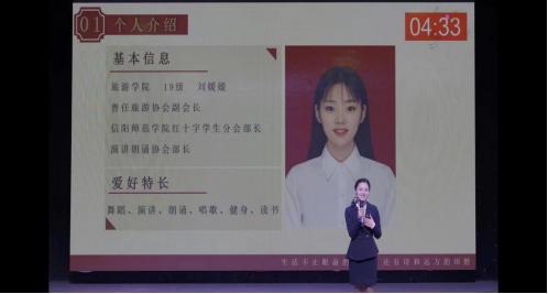 本次大赛分“职业生涯规划书”“PPT现场展示”“职业角色情景模拟视频展播”和“远程答辩”四个环节进行。刘媛媛以国际导游为职业目标,结合学院学科特色以及自身专业知识,根据多维测评从自我认知、职业分析、职业决策、计划路径、评估调整、职业道德六个方面,撰写了适合自己的职业生涯规划及实践方案。全程以流利的英语口语和标准的发音进行职业角色情景模拟,充分展现了国际导游的职业素养。其扎实的理论知识、准确的职业定位、出色的现场展示、全面准确的回答陈述,获得大赛评委的充分肯定和赞扬,最终以优异的综合表现斩获本研组金奖。
