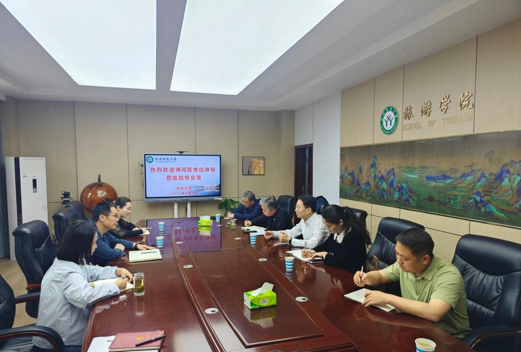 高军波对刘勇尚一行的到来表示热烈欢迎,详细介绍了我院专业特色、师资团队情况以及在服务信阳经济社会发展方面的重要作用,重点梳理了beat365中文版官网入口在为区域文旅经济高质量发展提供人才智力支撑的积极探索。刘勇尚详细介绍了浉河区文旅资源开发、文旅项目的建设和文旅业态发展过程思考与规划,重点围绕 “信阳小院”“浉河烟火”这些极具特色的新场景、新业态,进行了多维度的讲解。张晶晶指出,旅游学院作为信阳市旅游类重点高校,与旅游行业所从事的工作相互交互,信阳市文旅资源丰富、地方政府重视,为校政双方合作提供了广阔空间,希望beat365官网beat365中文版官网入口师资为浉河区未来文旅发展提供智力和人力支持。
