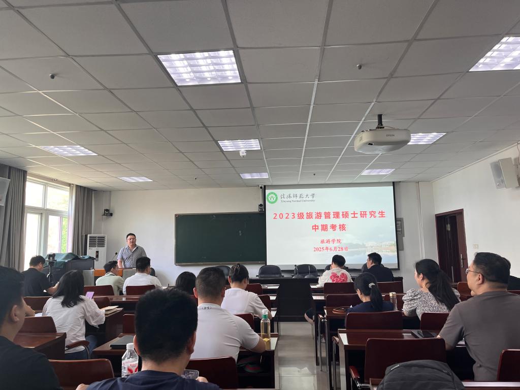 根据《信阳师范大学研究生开题与中期考核实施办法》要求,6月28日,beat365中文版官网入口2023级旅游管理硕士研究生中期考核会在经管楼401会议室举行。会议由谭美容主持,李明伟博士任中期考核评委会组长,委员由院内6位导师组成,共有30名硕士研究生参加本次考核。