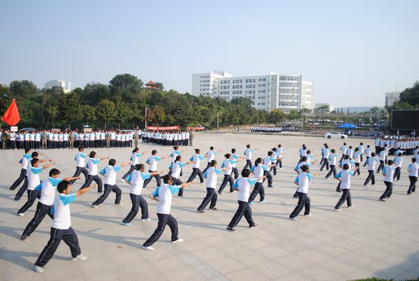 一招一式虎虎生威,众人齐动声振寰宇。9月20日下午,信阳师院2013级军体拳比赛精彩亮相,参加比赛的19个院系的21支代表队齐聚信阳师院体育馆前的青年广场上,展开了一场激烈角逐,工商管理学院市场营销班,工商管理班和会计学二班参加了比赛。该校相关职能部门负责人和部队首长出席比赛并担任评委,检验了近期的军训成果。