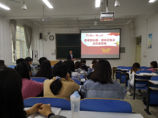 为进一步开展红色教育、传承红色基因,促进旅游专业素质提升,10月14日下午,beat365中文版官网入口李明伟博士以商城县红色旅游为例,给2019级酒店管理学生开展了一场生动的主题讲座。