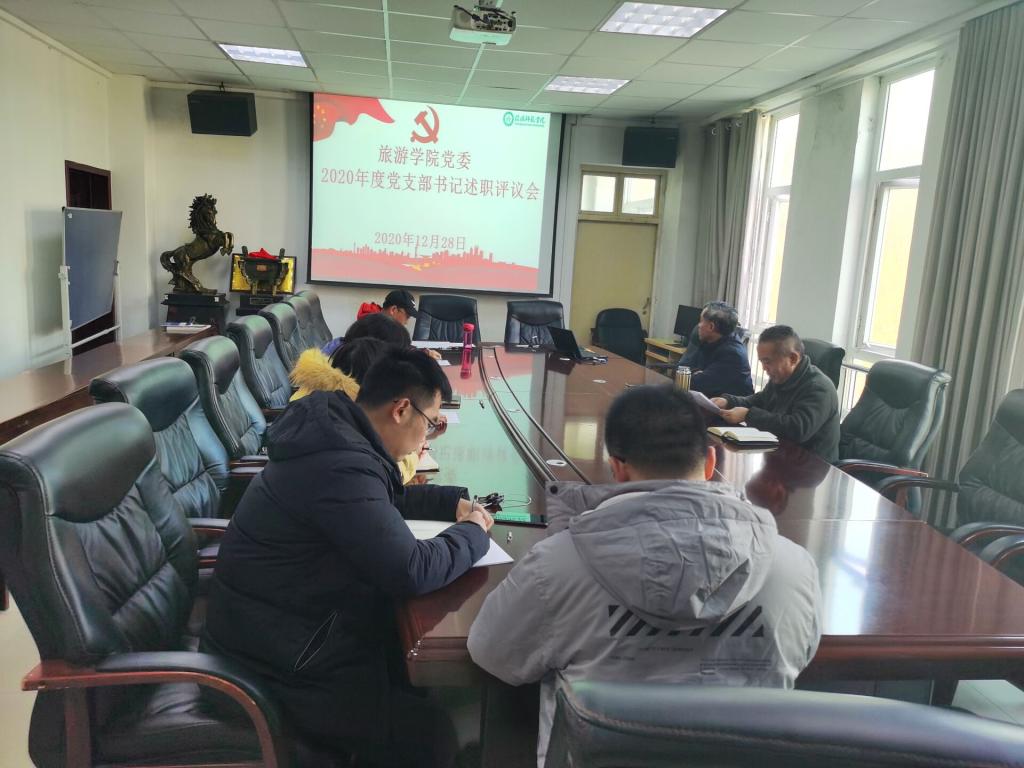 党委书记曹明贵首先介绍了本次大会的评议背景、重要意义和流程内容。接着引领深入学习党支部书记述职会议文件内容。其次,教工、学生各党支部立足工作实际,从履职尽责抓支部建设情况、工作中的不足以及下一步工作打算三个方面进行了述职,阐述了2020年度各自党建工作的完成情况及工作中的成绩和经验,分析存在问题及原因,提出了下一步工作思路和打算。