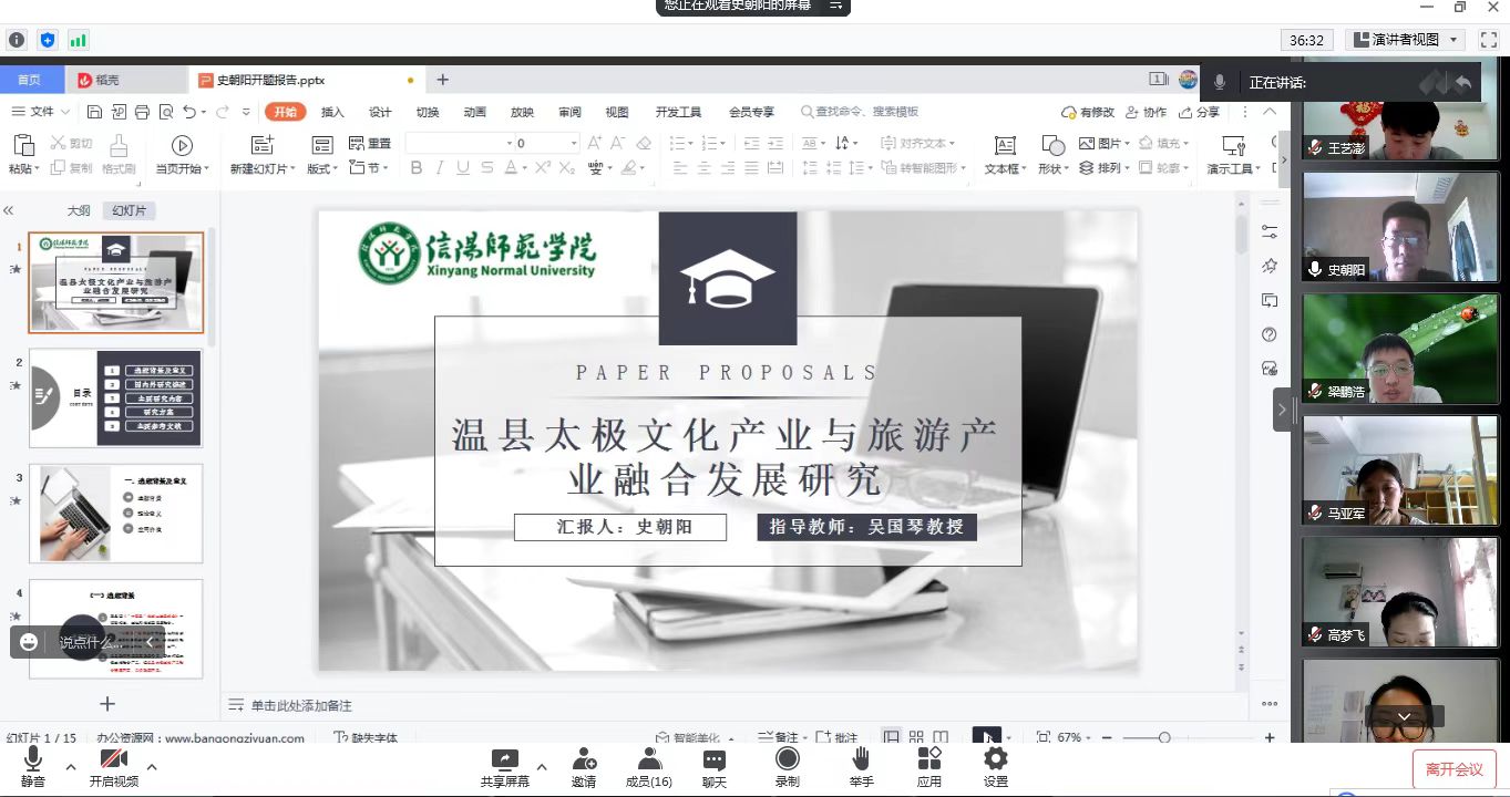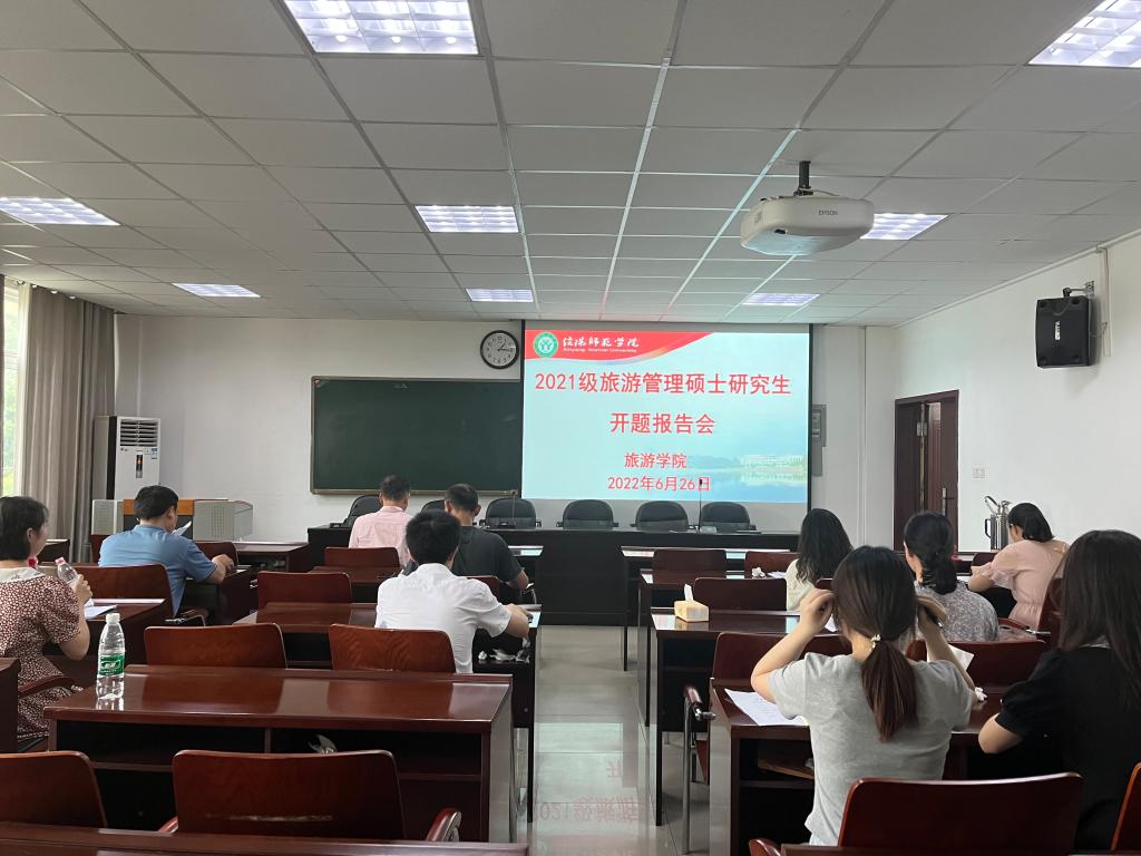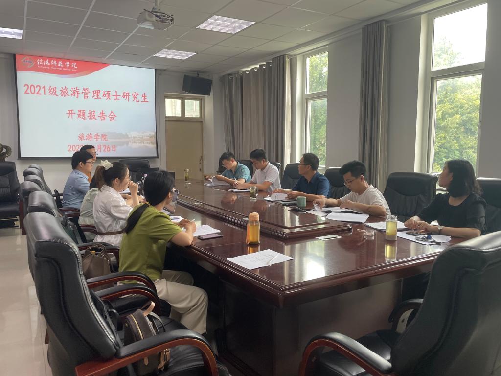 6月26日下午,beat365中文版官网入口2021级旅游管理硕士研究生毕业论文开题报告会分3组在经管楼401、404和线上腾讯会议同时举行。彭荣胜、高军波和吴国琴教授分别任3组评审小组组长并主持报告会。