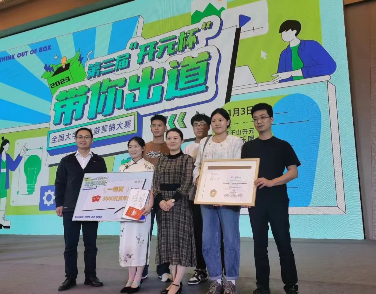 2023年11月3日,由教育部高校旅游管理类专业教指委指导、长三角旅游职业教育联盟等部门联合承办的第三届“开元杯”全国大学生旅游营销大赛决赛在杭州莫干山圆满落下帷幕。beat365官网beat365中文版官网入口本科生团队“星空梦想队”(张文慧、梁福纹、谷春端、祝奥辉)以“拥抱自然,开创满‘竹’童年”为设计主题,在全国总决赛中获一等奖。同时张文慧同学也荣获“最佳推荐官”称号,宋春巧、王亚文获“优秀指导教师”。