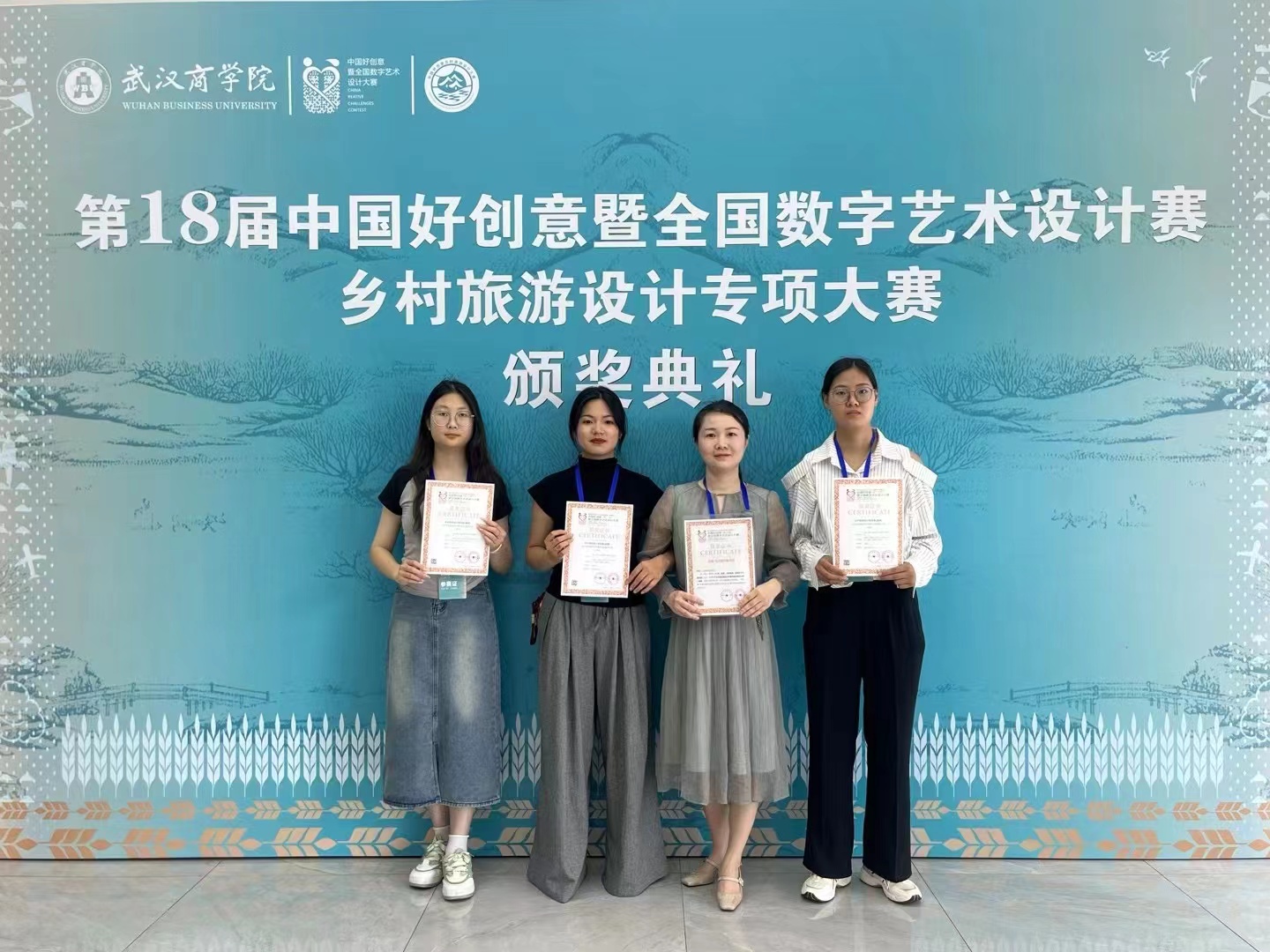 5月18日,由中国好创意暨全国数字艺术设计大赛组委会主办、武汉商学院承办的第十八届中国好创意乡村旅游设计专项大赛颁奖典礼在武汉隆重举行。beat365中文版官网入口作品“打造郝荷乡旅品牌,赋能亲子节事活动”荣获决赛一等奖,“信阳环南湾湖茶旅游线路”荣获决赛三等奖。宋春巧老师获“国赛优秀指导教师奖”,魏超老师获"省赛优秀指导教师奖"。