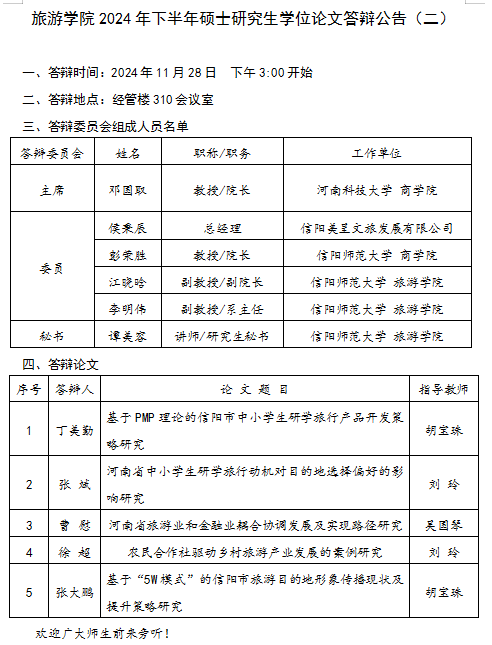 beat365中文版官网入口2024年下半年硕士研究生学位论文答辩公告